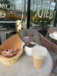 Чудесное заведение 😍 Очень вкусный круассан с вишней, сладинка с кислинкой, чувствуется Сливочное масло, когда кусаешь хрустящие бортики десерта 😋Вкусный раф, мягкий! Девушка за прилавком очень милая и добрая рассказала все и показала, также есть хорошенькая веранда на улице ❤️ 😋😍
