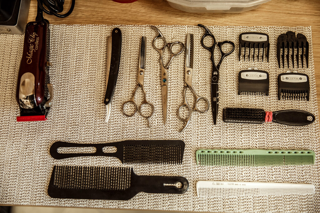 Создание формы бороды и четких контуров с использованием ножниц, машинки, шейвера и бритвы-шаветт с одноразовым лейзвием.
