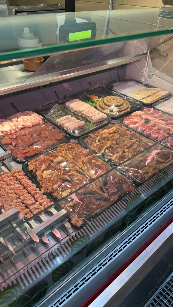 Very tasty mutton, as they said, they take it fresh at the market and cook it right away. It was cooked quickly, and snacks and salads were served with the meat.