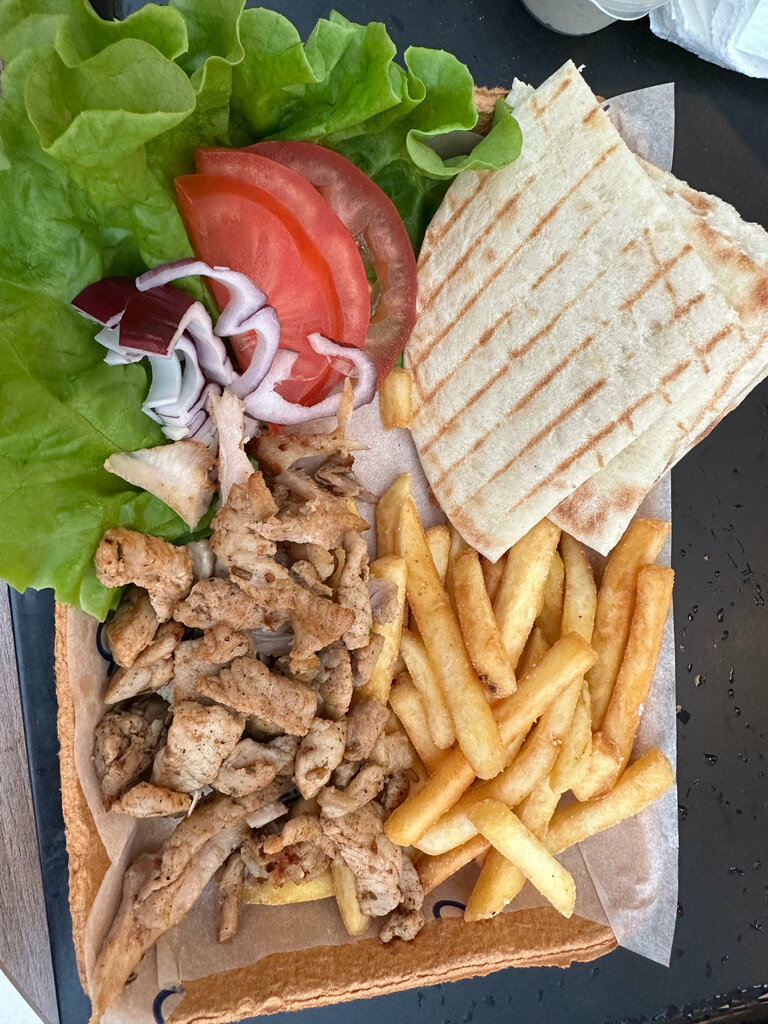 Было не вкусно! Сухая плохо приготовленная шаверма, которую назвали «гирос»! Отвратительно сухо, не проглотить, мясо сухое и не вкусное, картошка пережаренная и сухая, лепешка сухая! Соуса мало и сухое все это не спасло… рекомендую хозяевам заведения иногда пробовать то что подают гостям! 400₽