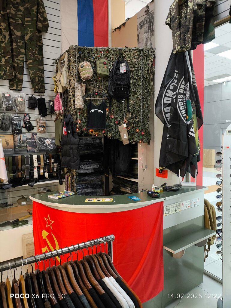 Отличный выбор одежды в стиле милитари. Много одежды европейского производства, неплохого качества. Приличный выбор ножей и аксессуаров. А самое главное, очень компетентные в своём деле продавцы, зашёл просто посмотреть, а вышел с брюками и ремнём. Кстати ,цены ниже если брать по городу. Хороший магазин короче.