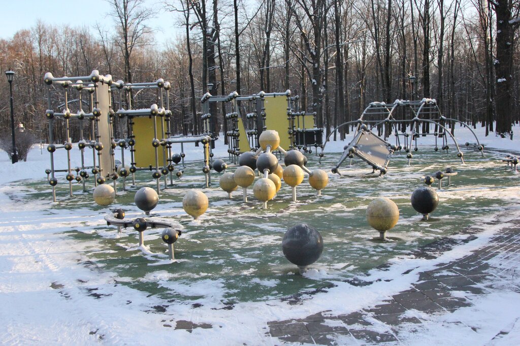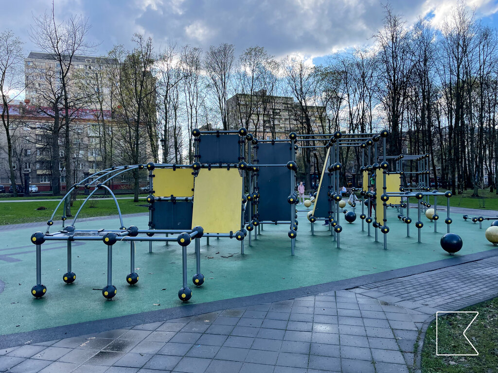 Много возможностей длинных стиков на шары и рейлинги, разбег есть. Цепкость норм. Минусы: куча детей, родителям пофиг, что занимаются взрослые. Проектировал явно не паркурщик, но все равно есть возможности простых трюков. Почти нет опорных прыжков и лачей.