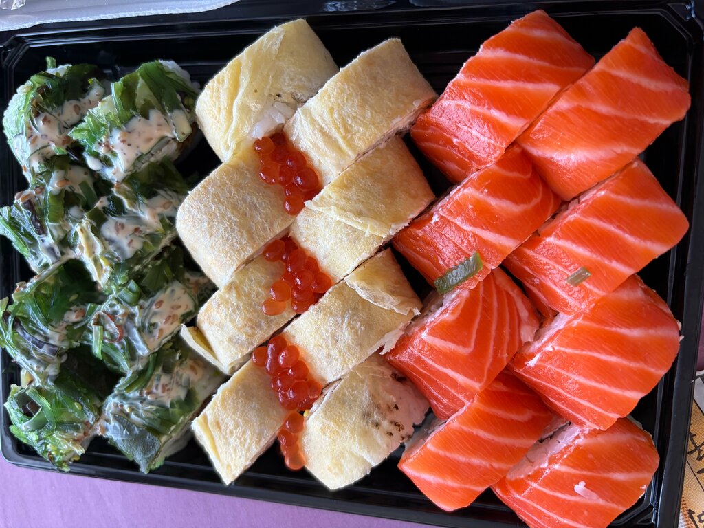Ordered on 10/20/25. Pickup using the promo code cream. The "summer" and "grill" sets. I liked everything. Friendly, courteous staff, the waiting time is short and was correctly named. With regard to sushi, it is impossible to find flaws even if you really want to. Everything is perfect. Each 8 pieces from the set are very different from the others, original tastes and an interesting combination of flavors, fresh products, rich taste, keep their shape well. We tried it with a family of 3 people, we liked everything and everyone, we won't order more in other establishments, we haven't tasted better. 10 out of 10, there can be no complaints.