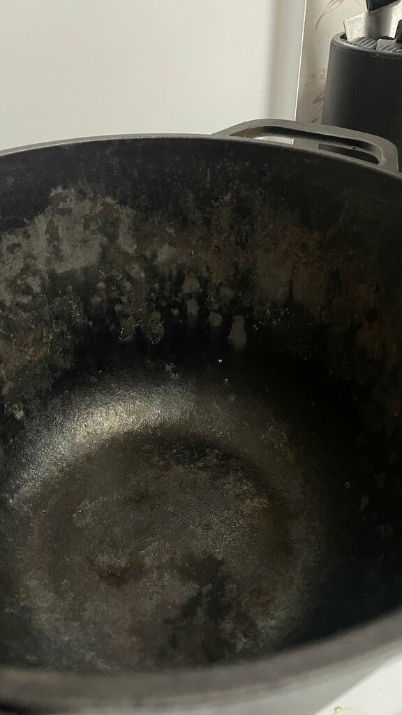 Купила неделю назад у вас «чугунный» казан, вот что с ним стало после первого приготовления плова, прилагаю фото, разве чугун должен ржаветь? Свяжитесь пожалуйста со мной ко у вас отвечает за контроль качества, поменяйте на другой или верните деньги