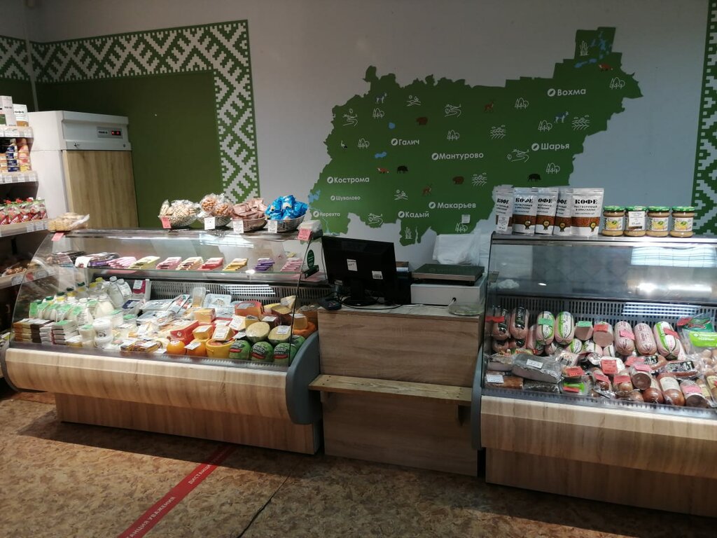 Свежие продукты костромских производителей. Большой выбор сыров. Не всегда работает безналичная оплата