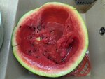 Купили с ребенком арбуз, пришли домой, еле дотащили 12 кг, ребёнок не мог дождаться когда разрежем, разрезали вот итог пол квартиры залили кислятиной арбузной, ребёнок расстроился.