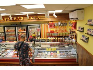 Икра, конечно, сейчас жутко дорогая. Учитывая наши пенсионные доходы, просто фантастически дорогая((. Но у сына был день рождения и мы не могли отказать себе в удовольствии порадовать его. Магазин понравился. Есть выбор икры и хорошей рыбы. Икра очень приличная: в меру соленая, хорошей консистенции. Мы брали икру кеты и горбуши. Я люблю более крупные икринки.