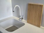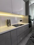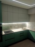 Заказывал кухню в 2024 году в студии Гармония г.Домодедово. Директор Алексей Л. и дизайнер Наталья Михайловна целый месяц со мной работали. Несколько раз я ездил к ним в офис, и каждый раз мы, сидя по полтора часа, частично дорабатывали проект. Разработка проекта заняла так много времени по моей вине - я, насмотревшись видео в интернете, пытался учесть всё, что только можно, внедрить все самые трендовые штуки и полезно использовать каждый миллиметр пространства небольшой кухни. Это был единственный салон,где меня отговаривали от того, что я увидел в интернете. Алексей досконально рассказывал мне все технические и эксплуатационные особенности всех тех новомодных фишек, поясняя, что это лишь красивая картинка из интернета. Некоторые из них, я все же принял решение оставить. В итоге проект был согласован, материалы подобраны. Еще через полтора месяца кухня была установлена. Натяжной потолок натягивался к фасаду кухни, вверху была установлена специальная укрепленная планка. Столешница из компакт плиты 12 мм, со скосом под 45° для удобства открывания ящиков и без пристеночного бортика. Такую столешницу однажды в другом салоне я со всей силы бил молотком и царапал гвоздем и ей ничего не было. Все петли и доводчики - оригинальный Блюм, да дорого, но решил на фурнитуре не экономить. Вентиляция с обратным клапаном позволяет включать вытяжку так, чтобы гарь не попадала обратно в помещение. Так же она соединена с вентиляцией встроенного холодильника, что позволяет ему отводить теплый воздух сразу в вент.канал и не перегреваться. При выключенной вытяжке естественная вентиляция поддерживается благодаря дополнительному вент. каналу, интегрированному в верхнюю полку-бутылочницу. Мойка врезана в столешницу заподлицо, а не просто приклеяна снизу, так как под мойкой установлен измельчитель. Такое крепление более надежное и позволяет гасить вибрации измельчителя. Установлена система очистки воды подключенная непосредственно к смесителю, имеющему гибкий шланг и режим душа. Около раковины врезан дозатор для средства для мытья посуды и кнопка включения измельчителя. Фасад - феникс, не оставляет отпечатков и легко моется. Ручки металлические интегрированные. Модный профиль Гола ставить отговорили, так как если что-то пролить на столешнице, то всё это потечет внутрь шкафов. Установили красивые интегрированные металлические ручки. Антресольные шкафы с системой открытия tip on, средние шкафчики и нижние ящики с доводчиками, над рабочей зоной и мойкой установлен подъемник, позволяющий свободно передвигаться при открытом шкафчике и не биться головой. Единственная рекомендация, с которой я согласился и потом немного пожалел - светодиодная лента под шкафчиками. Она недостаточно яркая(ничего страшного, ее можно заменить на более яркую) и расположена в углу. Из-за этого она освещает непосредственно то, что лежит на столешнице,но угол рассеивания света не позволяет светить на то, что держишь в руках. Для решения этой проблемы надо было располагать ленту не в углу у стены, а на краю шкафов, что привело бы к увеличению глубины шкафов на 2см и, соответственно, удорожанию верхних шкафчиков. Во всём остальном качеством кухни и принятыми техническими решениями доволен. Отдельное спасибо сборщикам Александру и Олегу. Они - настоящие профессионалы. Был приятно уд