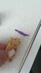 В батончике мюсли с яблоком посередине при надкусывании увидели кусок, и не маленький, полиэтилена, аналогичного упаковке, даже дырку видно на фото, когда с усилием достали его. Это хорошо, что в том месте был укус, иначе была вероятность проглотить вместе с продуктом. У производителя есть вообще понимание, что куча отзывов написано об их продуктах в которых находят люди то камень, то нитку, то волосы, то упаковку?!