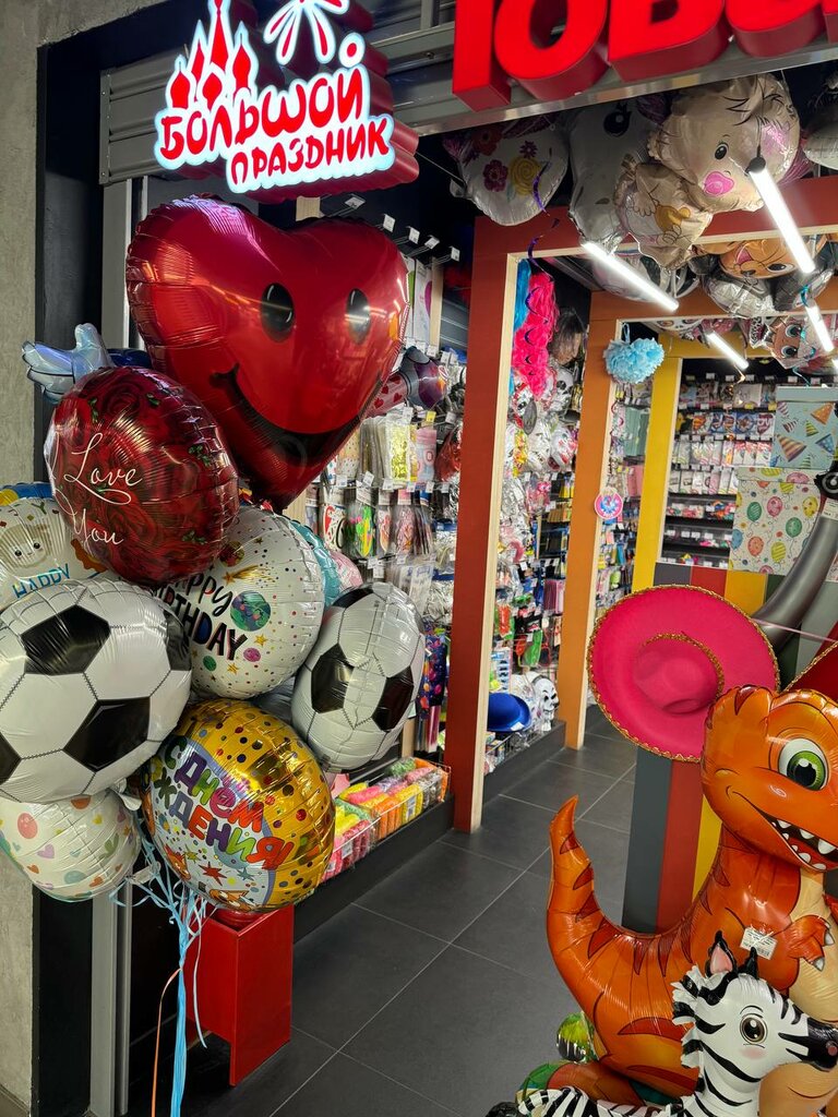Отличный магазин. Огромный ассортимент товара на любовь вкус и кошелёк. Покупала шары на др и фонтан на торт. Продавец сказала, что шарики будет летать пару дней, по итогу более 2х недель!!! Шарики можно выбрать с разными надписями: приколы, оскорбительные (это новый тренд), простые, для любимых и тд. Фонтан для торта горел долго и очень красиво, понравилось ещё что не было запаха гари и других посторонних запахов от него. Шары надувают за пару минут, так же есть пакеты для них, это очень удобно: 1. шары не разлетаются, 2. перевозить в машине.