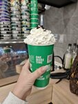 Интересный опыт ожидания поезда, в следующий раз подумаю, идти ли сюда. Наверное на бариста так чемодан повлиял, что раз уезжает, то и не так важно, как обслуживать))) Цены на кофе стандартные, латте орео оказался больше как молоко с сиропом, причем сиропа очень много, кофе не чувствовался совсем, но это скорее просто не мой рецепт, выбор большой, попробовать можно разные напитки, что в целом круто, за меню большой плюс. Десерты и выпечку не пробовала, но ассортимент тоже был довольно хороший. Пока сидела, хотела зарядить телефон, две розетки находятся за стойкой. (Из минусов, стул здесь только один, хотя стойка в целом позволяет поставить еще один или два.) До этого, пока ходила, видела, что мужчина вполне спокойно сидел заряжался, мне же сообщили, что зарядками пользоваться нельзя, идите к зарядной станции дальше. Ну, ладно, нельзя, так нельзя. Во время заказа не уточнили про приложение, хотя у людей после меня спросили и предложили скачать. В целом только благодаря этому и узнала о нем, скачала сама. Как оказалось позже, в целом это нормальная практика, чтобы побыстрее отдать людям заказ. Так что, довольно неоднозначное впечатление, возможно все зависит от работающей смены, но проверять это в другой раз я не буду.