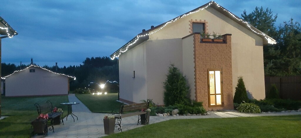 Три года подряд отмечаем новогодний корпоратив в этих домиках ,внутри все устроено для удобства отдыхающих ;много посуды,бокалы,посудомоечная машинка,огромный стол много посадочных мест.на первом этаже спальня на два человека на втором этаже еще две комнаты так же много спальных мест . Сомнение вызывает только лестница ведущая на второй этаж,открытая без поручней ,небезопасно по ней подниматься детям без сопровождения или нетрезвым людям и конечно пожилым. На улице большая территория есть мангал ,шикарная баня и водоем. Приезжайте не пожалеете !