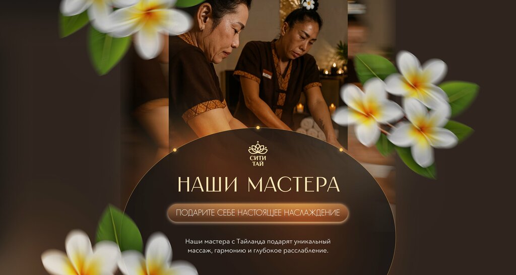 Уютная, распологающая к расслаблению атмосфера. Обстановка, детали, музыка все погружает в атмосферу релакса 🥰 Внимательный и вежливый персонал. Мастера тайские девушки, у них культура массажа это национальное, знания акупунктуры, различные техники, все на высшем уровне👌 Одним словом сити Тай- это рай;) Очень приятно, что после массажа в качестве комплимениа угощают травяным)) Планирую посещать Сити Тай на постоянной основе. Это хорошее вложение в свое здоровье.