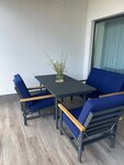 Заказывали мебель на террасу, специально искали что-то, что будет одновременно красивым и прочным. Устали от пластика, постоянно ломается, тут корпус из алюминия. Подобрали отличный комплект из дивана, кресел и стола.