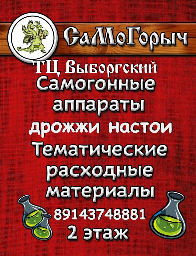 Магазин находится в удобном месте 2 этаж ТЦ Выборгский ,ассортимент не уступает крупным магазинам, есть товары и для подарка наборы, игры, футболки и для души самогонные аппараты ,настои, добавки и для дома автоклавы ,коптильни ,пивоварни с наборами для пива, магазин хоть и не большой но всё по взрослому.