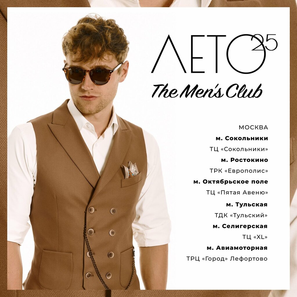 Магазин The men’s club - это современный, стильный, концептуальный бутик мужской одежды. Качественные ткани, модные тенденции, широкий выбор, профессиональные консультанты. Одеваемся всей семьей уже 10 лет! Процветания и развития, спасибо, что в огромном мегаполисе сеть ваших магазинов - это острова стильной и модной одежды по демократичным ценам.