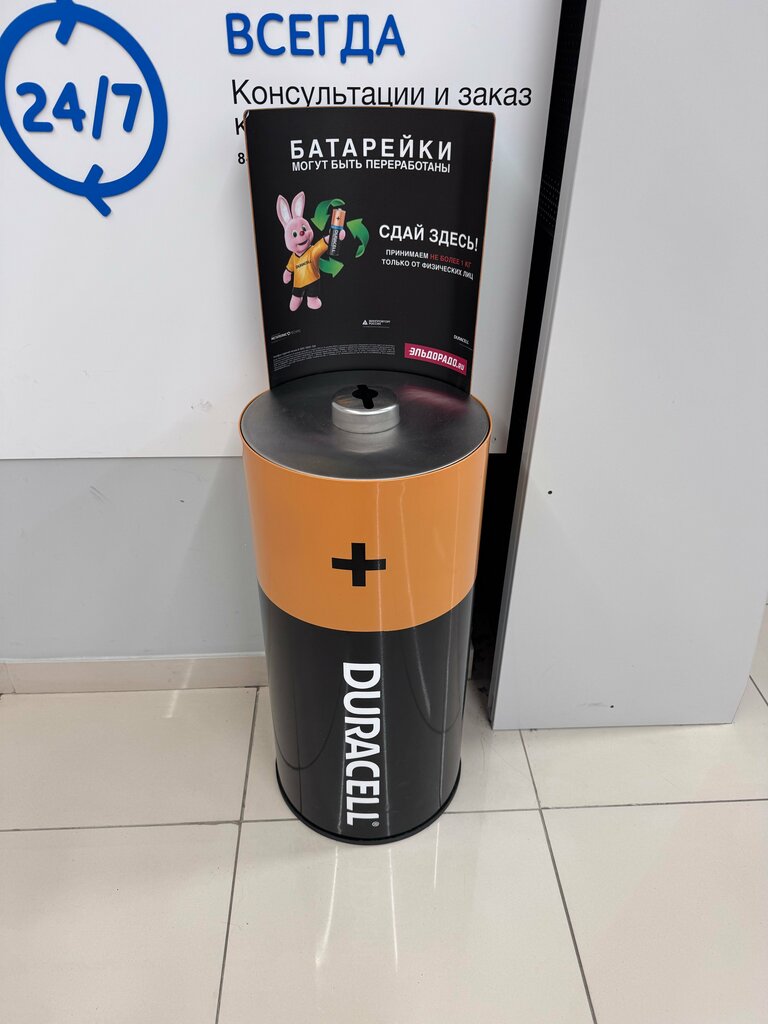 Description:Как найти объект: Контейнер находится в магазине «Эльдорадо». В контейнер можно складывать любые малогабаритные батарейки и аккумуляторы.