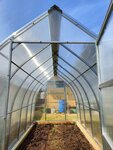 Теплица Арочная С поликарбонатом Профиль 25*25 5 продольных стяжек: 2 основания, 3 сверху. Шаг дуг 0.65м. Размеры теплицы: Высота – 2.08 м. Ширина – 2.5 или 3м. Длина – 4, 6, 8м. Цена за теплицу С ПОЛИКАРБОНАТОМ: 3*4м. = 24950 руб.