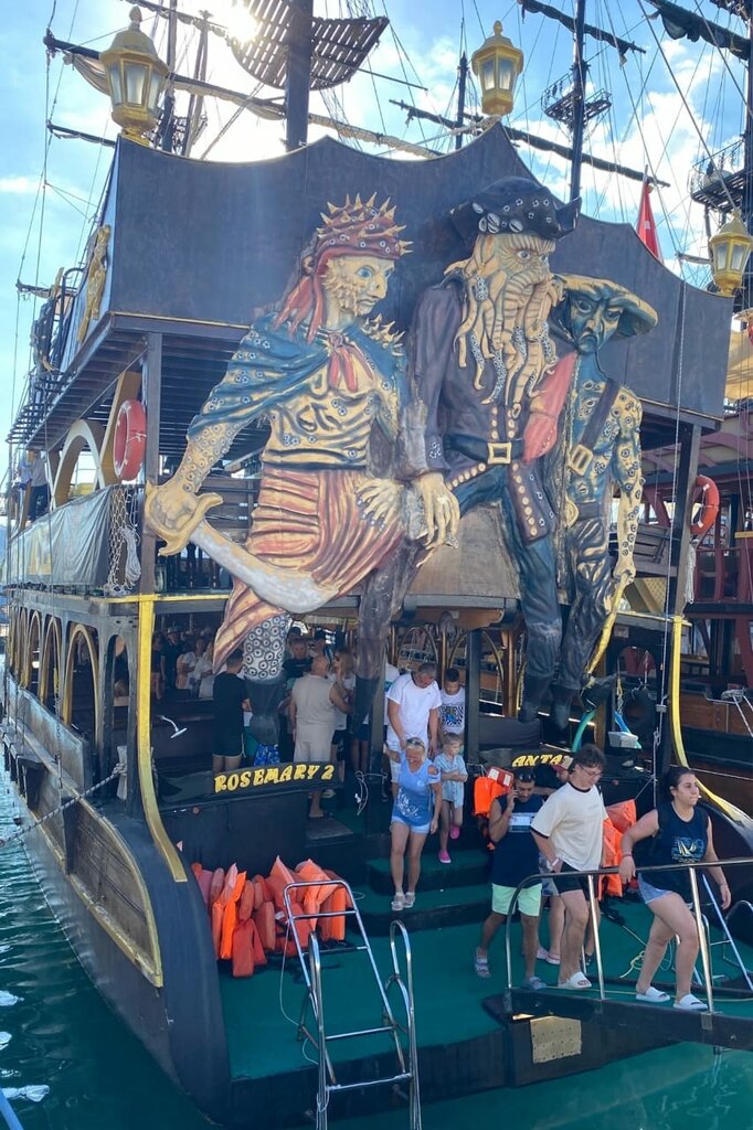 We had a vacation with my husband in Turkey from 09.27.24 to 10.33.24. We bought tickets for a sea excursion on a pirate ship. We got the ship ROSEMARY 2. The ship was departing from the port of Kemer. There were many pirate ships and yachts moored at the pier, which sailed along the same route. Our group was met by the ship's crew. All the guys are polite and friendly. The tour took place along the coast of Kemer. At the beginning of the tour, the captain and his team created a positive atmosphere for the tourists. There were several swimming stops during the tour (Cleopatra Beach, Pirates Cave, etc.), as well as a foam disco with contests for children and adults. Dancing on the open deck filled everyone present with positive emotions. Sea views, swimming in the clearest water, rocky coast ... After the tour, the mood is great, the memories are pleasant. Great impressions and a positive, cheerful crew. Thanks to the captain and the crew for the pleasant time spent during the sea voyage on the ship ROSEMARY 2.