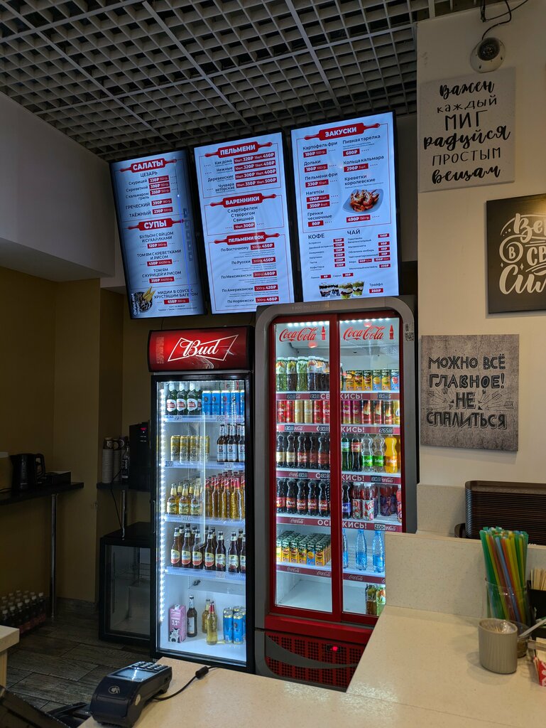 Креветки "королевские" в них только название такое, размер креветок не соответствует и цена , лавандовый РАФ с запахом и вкусом плесени (говорят такой сироп, хотя я знаю этот сироп на вкус) . Сухая булка в хотдоге. Желания вернуться в это место нет.