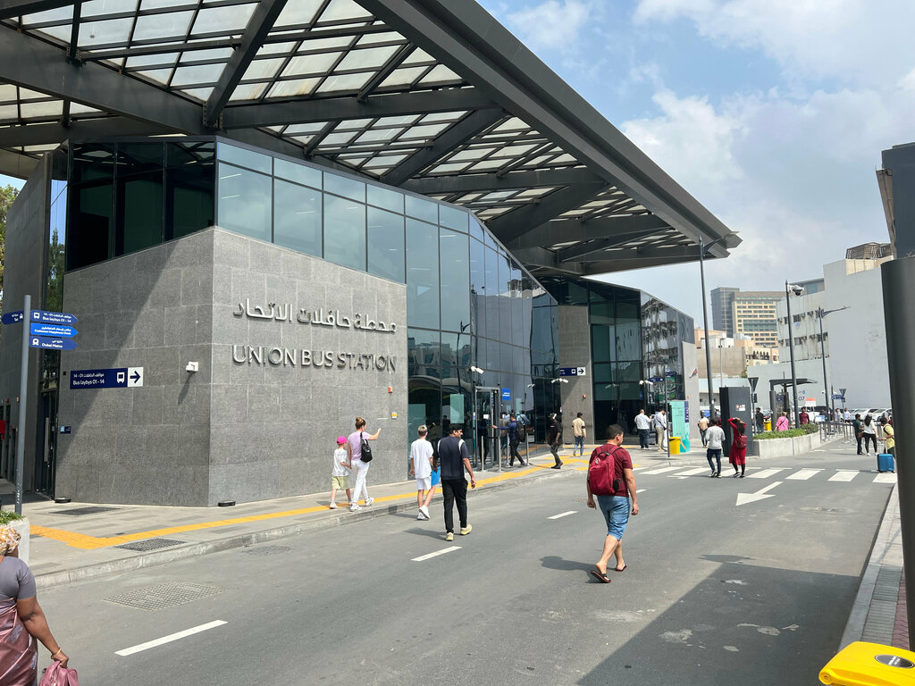Convenient train station, if you have any questions, the consultants will tell you where to find which bus) you can go to Dubai and Fujairah on the 116th, runs every hour, the price is 27 dirhams per person. It's clean, there are benches and a toilet. There is a money exchange. Taxis are always on duty. There is a market across the street vegetables fruits fish meat) the buses are comfortable, clean and air-conditioned And yes, we paid cash to the driver and drove without any problems!!! Although, as I understand it, this option is not available on all routes, it is better to buy Silver cards in the subway upon arrival.