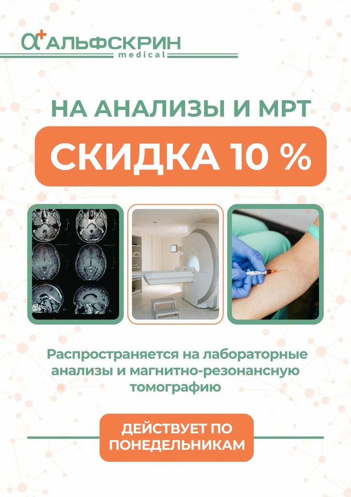Альфскрин - отличный медицинский центр. Здесь я делаю все свои анализы и обследования, так как могу быть уверенна в качестве и скорости получения результатов. Врачи здесь опытные и приятные, всегда готовы помочь и объяснить все детали исследований. Очень удобно, что есть собственная лаборатория, результаты всегда точные и быстро готовы. Особенно хочу отметить детскую комнату, где мой ребенок чувствует себя комфортно и получает подарок после анализов. Удобная система записи на прием и доступные цены также добавляют плюсов в пользу этой клиники. Из сотрудников хочу выделить Гастроэнтеролога Новожилову Олесю Леонидовну и педиатра Бурыкину Анастасию Николаевну - им доверяю полностью. Рекомендую всем обратить внимание на Альфскрин, здесь вы получите отличное обслуживание и качественные результаты!