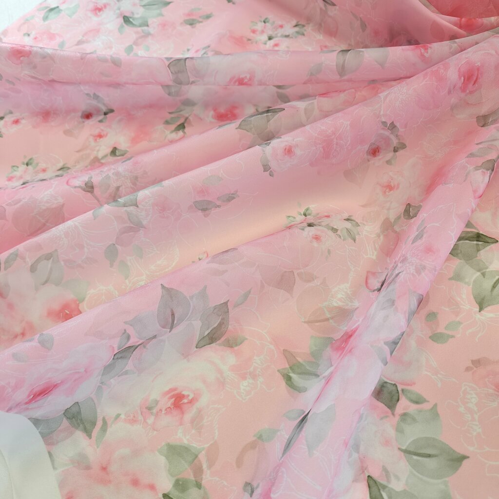 Органза матовая Виола Розы акварелью Ткань органза матовая Виола с красивым принтом будет прекрасным вариантом для пошива нарядных платьев.
