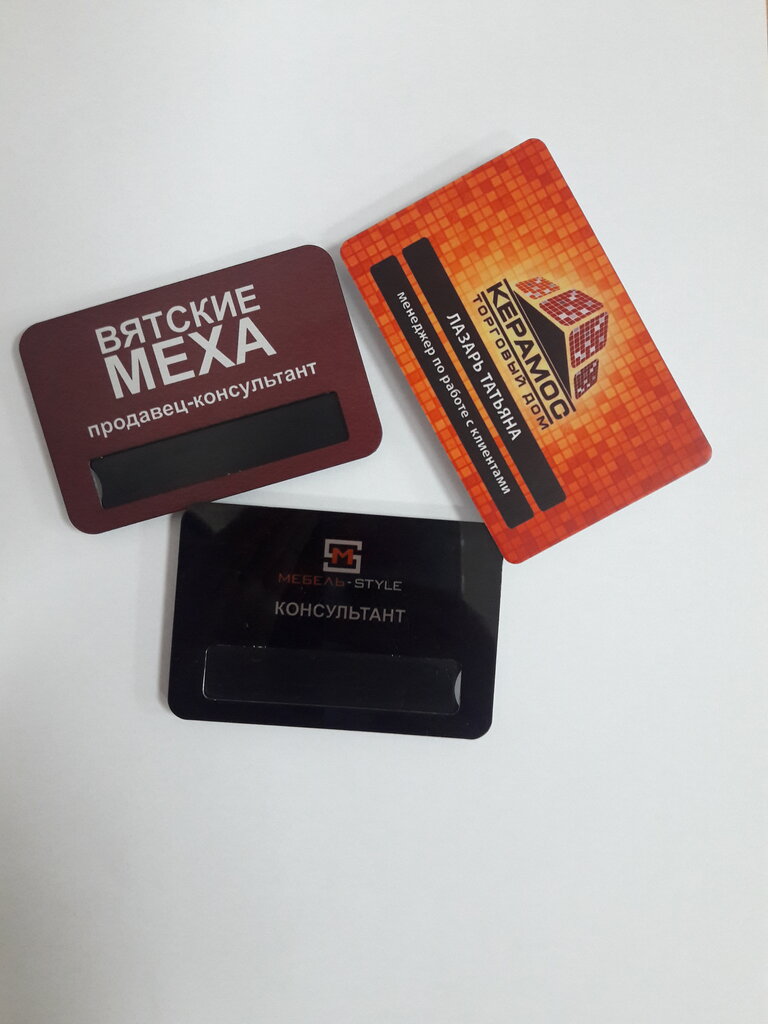 Бейджи с уф печатью, материал пластик, размер, форма, цвет пластика может быть любая, расчет по запросу - спрашивайте у менеджеров.