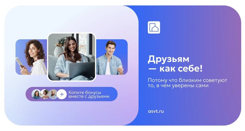 Поделитесь АСВТ с друзьями — и получите месяц Интернета бесплатно! ✨ Участвуйте в акции «Приведи друга»: приглашайте друзей и вместе получа...