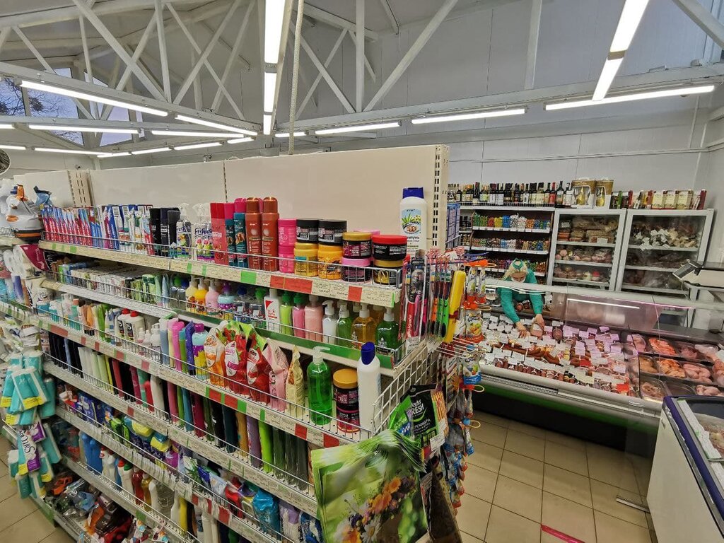 A small shop, cramped - this is a minus There are a lot of different products - this is a plus All kinds of frozen food or fresh meat are often too expensive - this is a minus Delicious and fresh buns are probably delivered once a week - this is a plus, but it would be possible more often