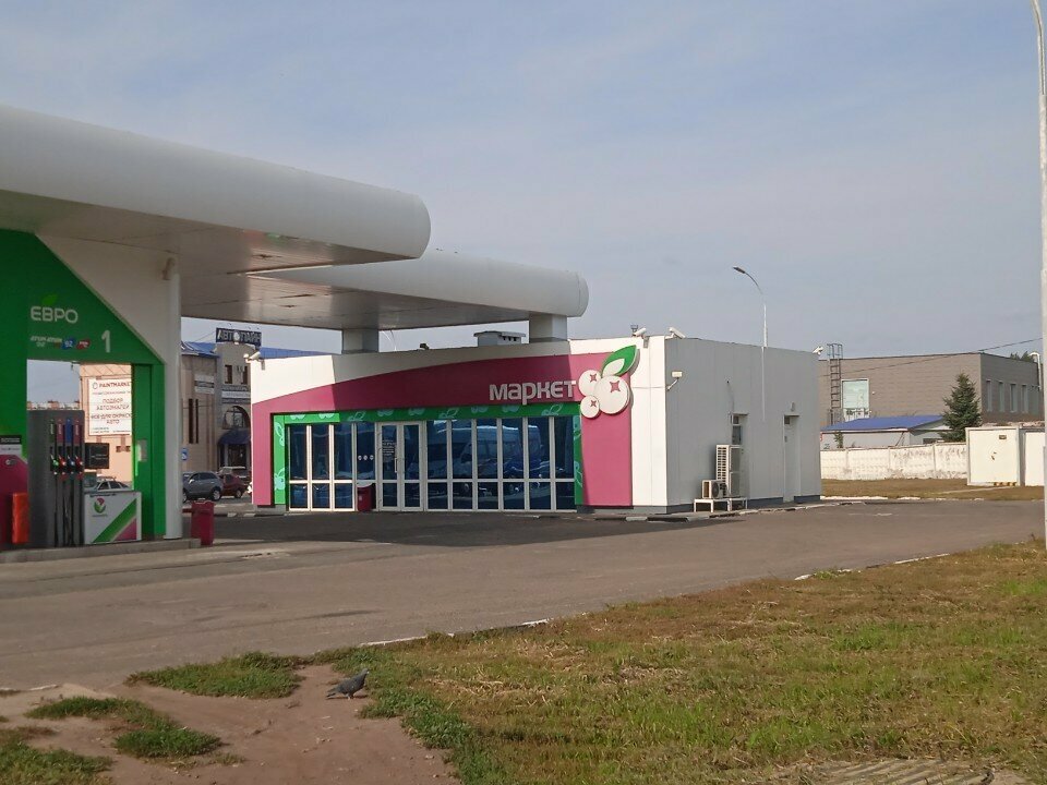 Всё как на любой Башнефти. Горячий фастфуд, чай, кофе. Уборная. Нормальный въезд. Выезд в поток, туговатый. Бензин дорогой, качество нормальное, но не самый лучший.