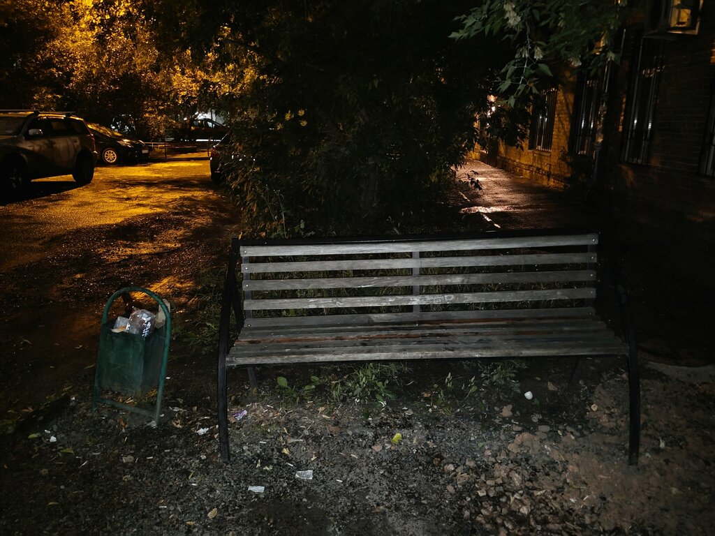 Скамейка имеет свою атмосферу, но вот несколько недостатков: 1. Всё лето была оккупирована очень странным мужчиной. Видимо, поклонником этой лавочки. Сидел и ночью и днём, словно приклеенный. 2. Год назад сделали ремонт труб, но асфальт почти не заделали. По сути, теперь здесь камни вместо асфальта, что неудобно. И, судя по всему, доделывать не собираются ремонт должным образом. 3. Сама лавочка устарела.
