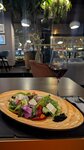 Были под Новый год, поэтому с выбором столика были проблемы, нас посадили практически напротив входа, поэтому нас переодически сдувало от открывающейся двери, хорошо что нам дали плед. В этот раз блюда были не так хороши,как обычно...Странная интерпретация греческого салата, добавили лишние соусы и листья салата, а так же насыпали "земли", мы так и не поняли из чего и для чего была эта невкусная субстанция, т.к. официант пошутил (а может и нет), что это реально земля из-под цветов)))Бургер был очень вкусный, со вкусом дымка, подавался с картошкой фри к которой прилагался томатный соус, лучше б дор блю или сырный. Рёбрышек маловато, чуть пересушеные. В конце ужина нам подарили по очень красивому новогоднему шару ручной работы, очень было приятно.