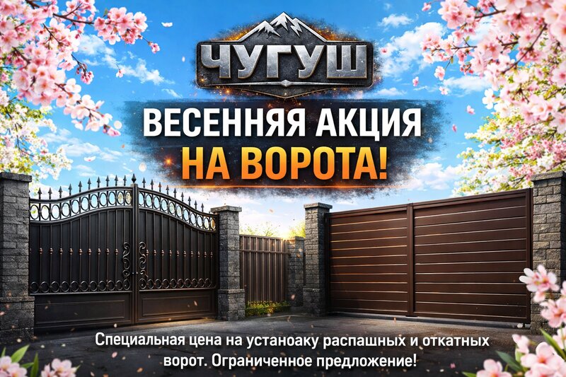 Весенняя акция на ворота! Компания «Чугуш» объявляет специальную цену на изготовление и установку ворот. Делаем распашные и откатные ворота ...