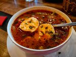 Хорошее заведение для обеда. Внутри ухожено, красиво, персонал вежлив. Ооооочень порадовали цены, по сравнению с близлежащими заведениями Из минусов: борщ жидковат, сало подали очень размороженное как желе, но всё это перекрывается соответствующей ценой Комментарий от друга: божественные гренки
