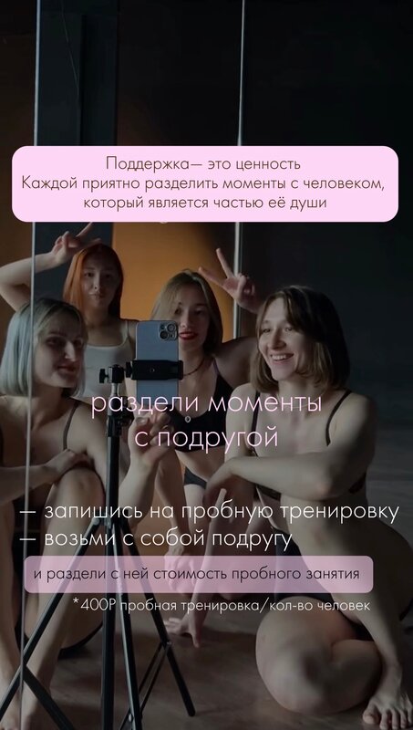 хожу в эту студию уже 7 месяцев, за это время она стала для меня не просто местом для танцев, а каким-то убежищем от проблем, каждый раз после работы с радостью бегу туда❤️‍🩹в студии преподают прекрасные девушки, которым важен твой комфорт и прогресс, благодаря им я стала пластичнее, сильнее и увереннее в себе💪🏻хочу отметить тренера Ярославу: нетривиальные и безумно красивые хореографии, индивидуальный подход к каждой ученице, очень добрый и светлый человек❤️А также Анастасию Маханову: выйти за рамки, женственность, сила, всегда поможет и подскажет❤️стильный уютный интерьер, удобство в каждой мелочи 🥹