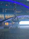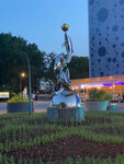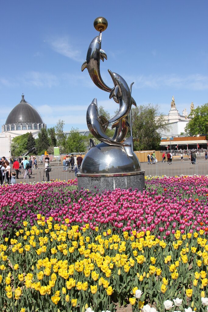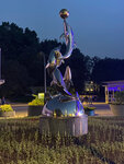 Тематическая скульптура рядом с дельфинарием (океанариумом). Четыре дельфинчика с мячом выглядят очень органично на цветочной клумбе напротив входа в павильон, где эти самые дельфинчики обитают, тренируются и показывают себя. Я только не понял, причём здесь шар, из которого они выпрыгивают. Шар символизирует планету Земля? Которая лежит на четырёх дельфинах? Которую дельфины решили бросить нафиг, чтобы поиграть с Луной, как с мячом. Очень символично! Скульптуру-философу большой респект!