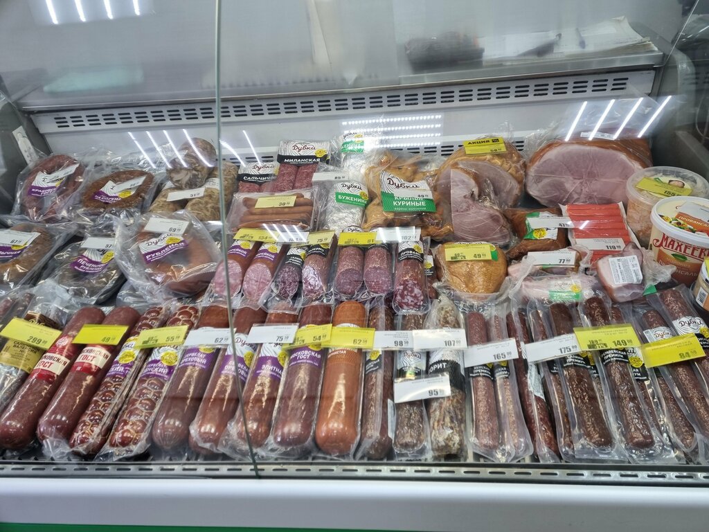 Нравится продукция представленная в этом магазине, к основному ассортименту в продаже есть рыба и другие сопутствующие продукты, берём колбасу, сыр и полуфабрикаты здесь, всегда хорошее обслуживание, удобное расположение, постоянно проводятся акции