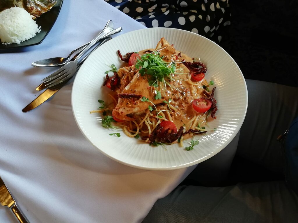 I really liked it! I recommend it! The food is delicious, the portions are larger, the prices are standard. The cake was ordered nearby in a pastry shop nearby - the taste is amazing! The service is excellent!