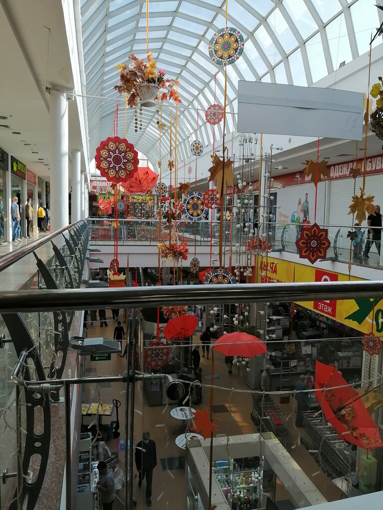 Магазин рядом с домом. Широкий ассортимент товаров. На 2 этаже можно купить всё для дома. Есть ателье и магазины одежды. Очень нравится магазин детской одежды "Фунтик". Покупаю всё для дочки только тут. Качество вещей на высоте. И моей моднице всё нравится. Рекомендую 👍