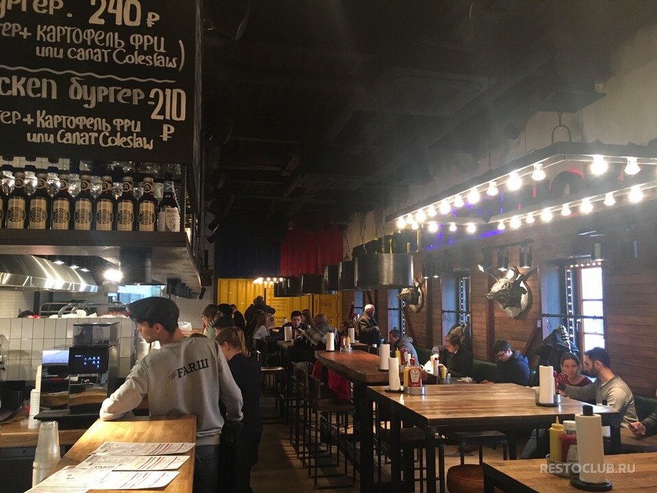 Атмосфера немецкого провинциального паба. Тесновато, но быстро поесть вполне комфортно. Бургеры как всегда отличные! Одни из лучших в Москве. Пиво подали быстро, холодное. Кассир - приятная общительная женщина. Из недостатков: В меню не нашла батат фри, а потом оказалось, что он есть ( когда увидела за соседним столиком). Хотелось бы больше вариантов пива, но то , что сейчас в наличии хорошего качества. *И до сих пор не могу привыкнуть к этому орущему звуку на зоне выдачи. Но за вкус бургеров ставлю 5.