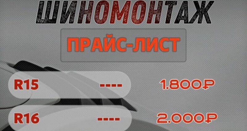Шиномонтаж r15-1500 Замена масла -500 Замена колодок -500
