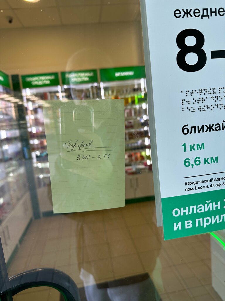 Пишу конкретно про аптеку по ул.Пятницкая 17б. Пришла в 8.42. Висит данное объявление. Закрылись не успев открыться как говорится. Это не в первый раз. И по наличию препаратов причем стандартных всегда какие то проблемы, приходится бежать в другую аптеку.