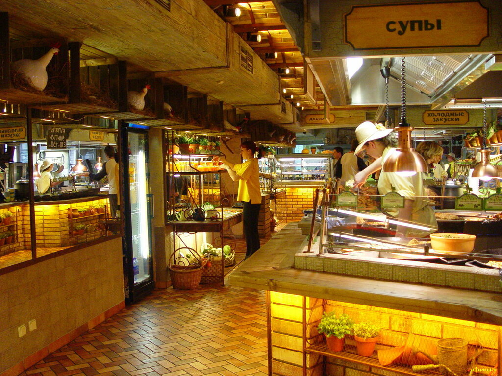 Это не ресторан, забегаловка. Меню у входа прочитаешь,а потом с подносом бегай ищи, где то ,что тебе нужно. Еда вся холодная,картошка пережаренная, свинина и говядина - подошва,окрошка одна колбаса, борщ одна свекла, на кассе в счет включают чужой поднос, духота шумно, грязно.