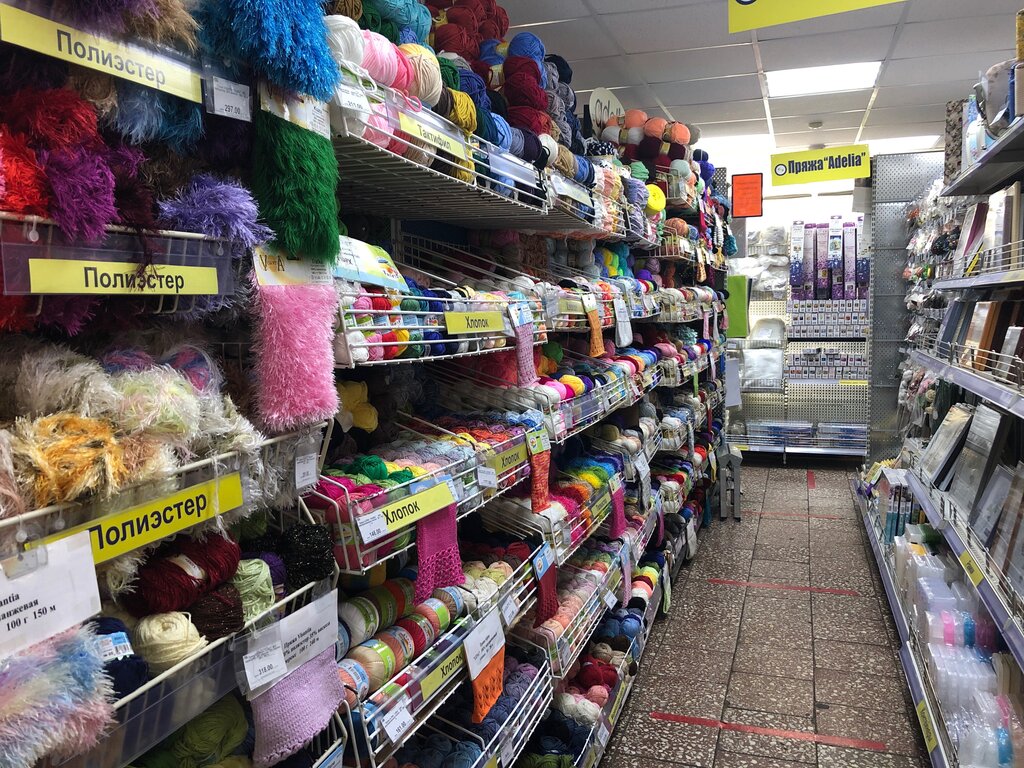 Большой выбор пряжи, акссесуаров для шитья, вязания и тд Есть заготовки и много, много всего. Продавцы доброжелательные.