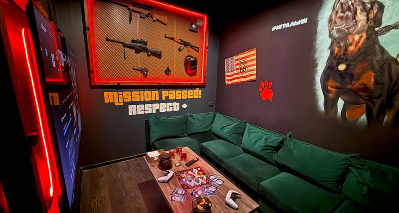 Комната с PS5 на 4К TV и настольными играми, вместительностью до 3 человек.