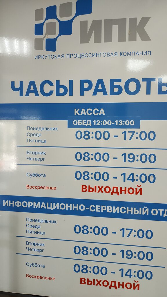 Так и не понял назначение и цели Информационно - СЕРВИСНОГО центра. Мне нужна услуга по замену счетчика. Сервис по данному вопросу не предложен, информирование заключалось в предложении взять визитку иркутской фирмы по поверке счетчиков. Девушка в окошке неприветлива. Контора, эта, как я понимаю, в любом случае содержится на средства плательциков услуг ЖКХ, т.е. ее содержание и зарплата этой девушки в окошке, тоже из карманов граждан. Так может стоит ее научить работать с посетителями?