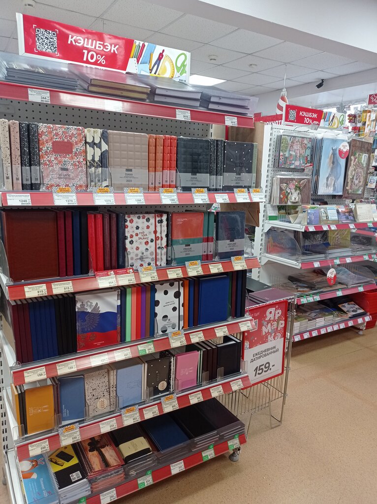 Небольшой, но хороший магазин! Хороший ассортимент канцелярских, для офиса и других товаров. Всегда чисто. Товары размещены аккуратно и по определённому, удобному порядку. Продавцы вежливые, отзывчивые и всегда помогут подобрать всё необходимое! Люди уходят с покупками и хорошим настроением! Одно пожелание руководителям: обновить ступеньки на входе, особенно с правой стороны. Успехов вам!