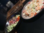 Еда бесподобная. Заказали три вида салатов, два горячих мясных блюда, бургер. Все очень вкусно, "пальчики оближешь". Пицца изумительная. Все свежеприготовленно! Ожидание минут двадцать. Персоналу огромное спасибо!!! Рекомендую!