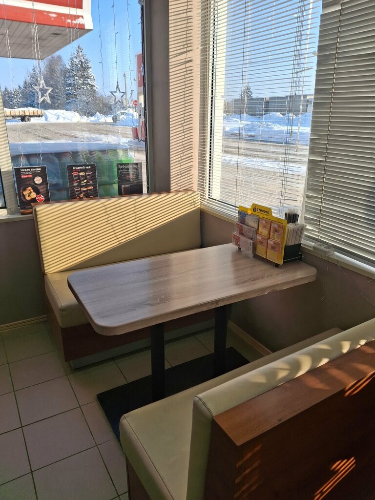 Заправка хорошая . Добрый общительный персонал. Но есть и минусы:Во первых в туалете немного грязно; Во вторых идёт только горячая вода. А так есть большой выбор : напитки, сладости, мороженое, бутерброды и булочки.
